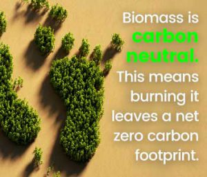 Biomass is carbon neutral. This means burning it leaves a net zero carbon footprint. Minimal greenhouse gases like carbon dioxide and methane are produced and released into the environment by burning biomass. According to the U.S. Environmental Protection Agency, the carbon dioxide created by burning biomass does not increase the levels of carbon dioxide in the atmosphere.