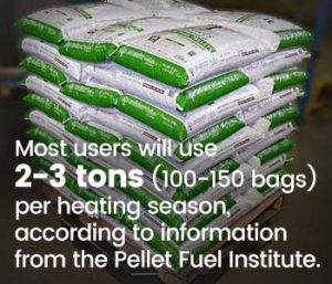 Unlike sources of energy that come from a utility service like gas or electricity, you need to purchase wood pellets to use them in your home or business. You can buy wood pellets by the bag or by the ton. Bags hold 40 lbs of pellets. One ton of pellets contains 50, 40-lb bags. Purchasing by the ton can be more economical. Most users will use 2-3 tons per heating season, according to information from the Pellet Fuel Institute.